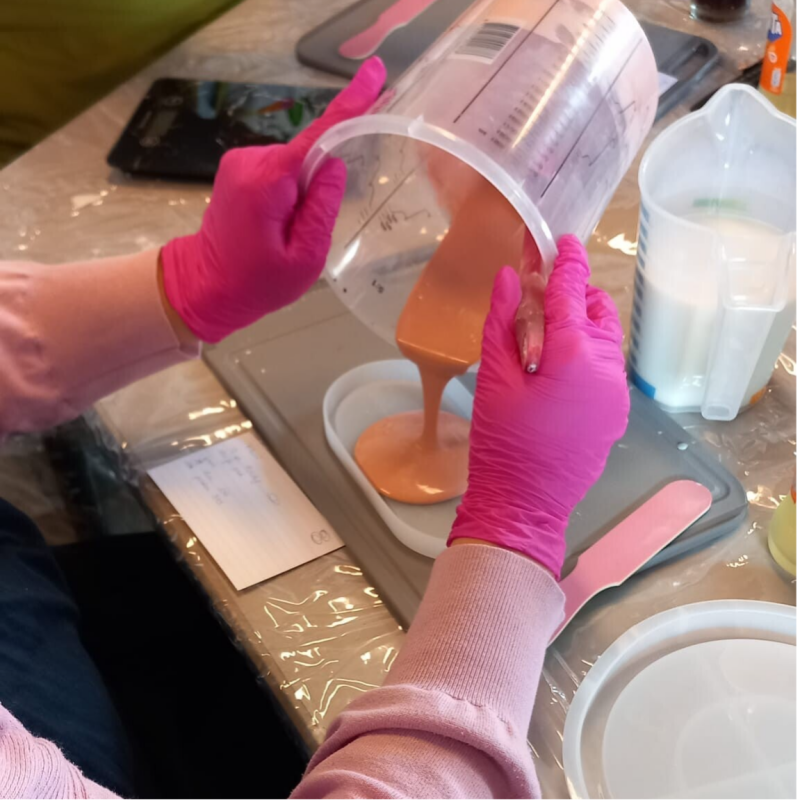 Alle materialen en benodigdheden voor de workshop (Jesmonite, pigmenten, mallen, etc.) zijn door ons voorzien